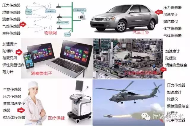 MEMS传感器作为获取信息的关键器件,对各种传感装置的微型化起着巨大的推动作用,已在太空卫星、运载火箭、航空航天设备、飞机、各种车辆、生特医学及消费电子产品等领域中得到了广泛的应用。